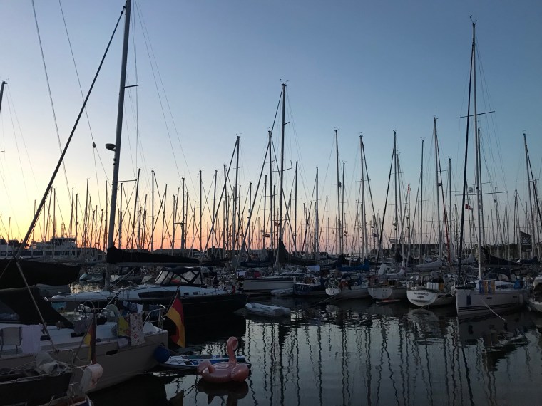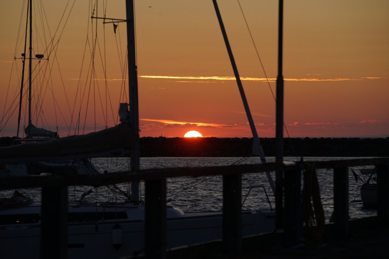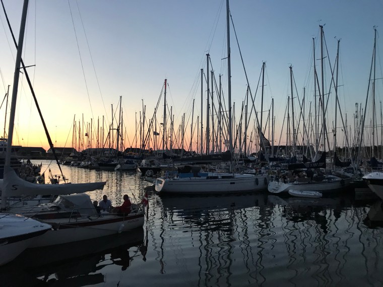Lagom till solnedgången satte vi oss på piren. Det blev snack om allt mellan himmel och jord och lite till. Precis som det ska vara när man har det riktigt bra.