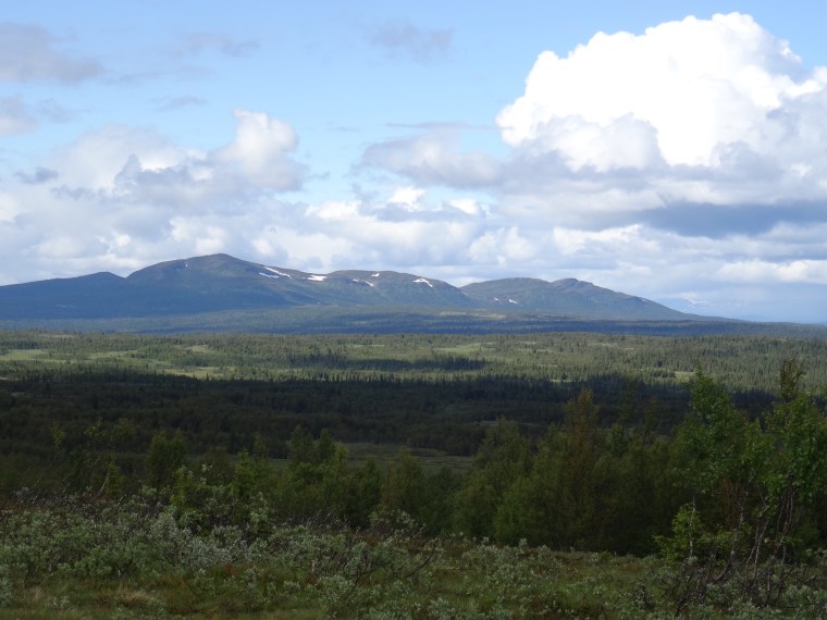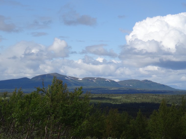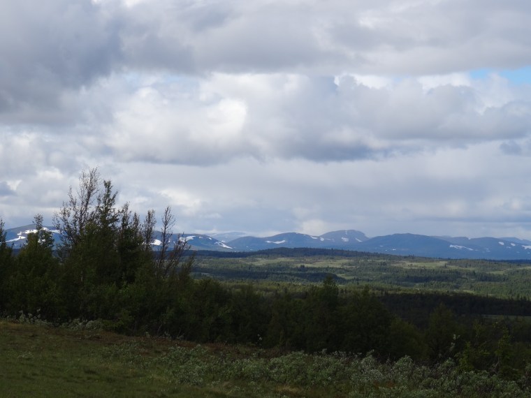 Sedan drog vi till fjälls och tog oss sakta men säkert upp mot trädgränsen. Vi kom inte hela vägen men fick ändå belöning i form av vacker utsikt från Önrun över AnsättenfjälletHär fick vi några regnskurar och en hagelskur över oss innan vi kunde gå ur bilen och fotografera.