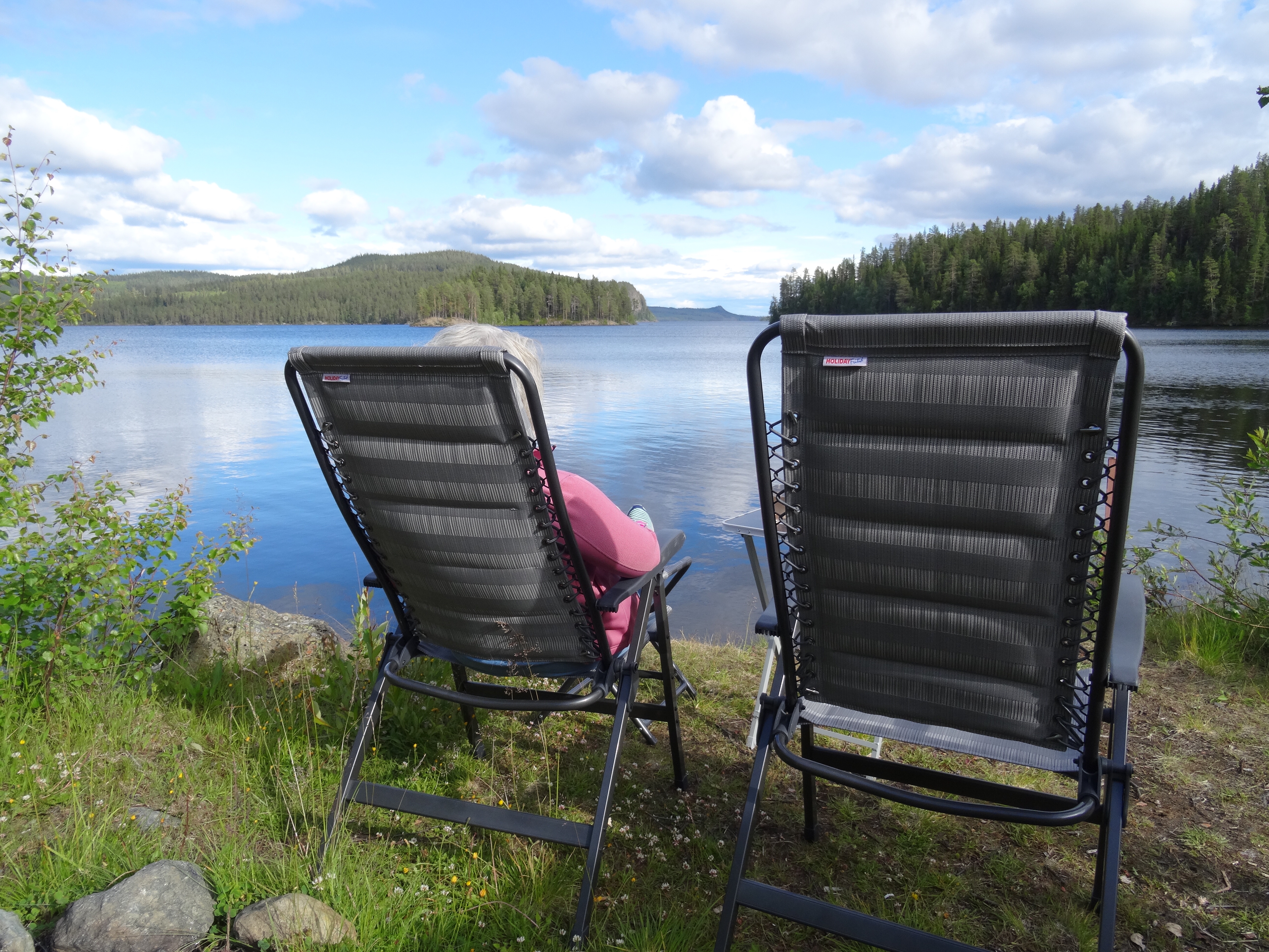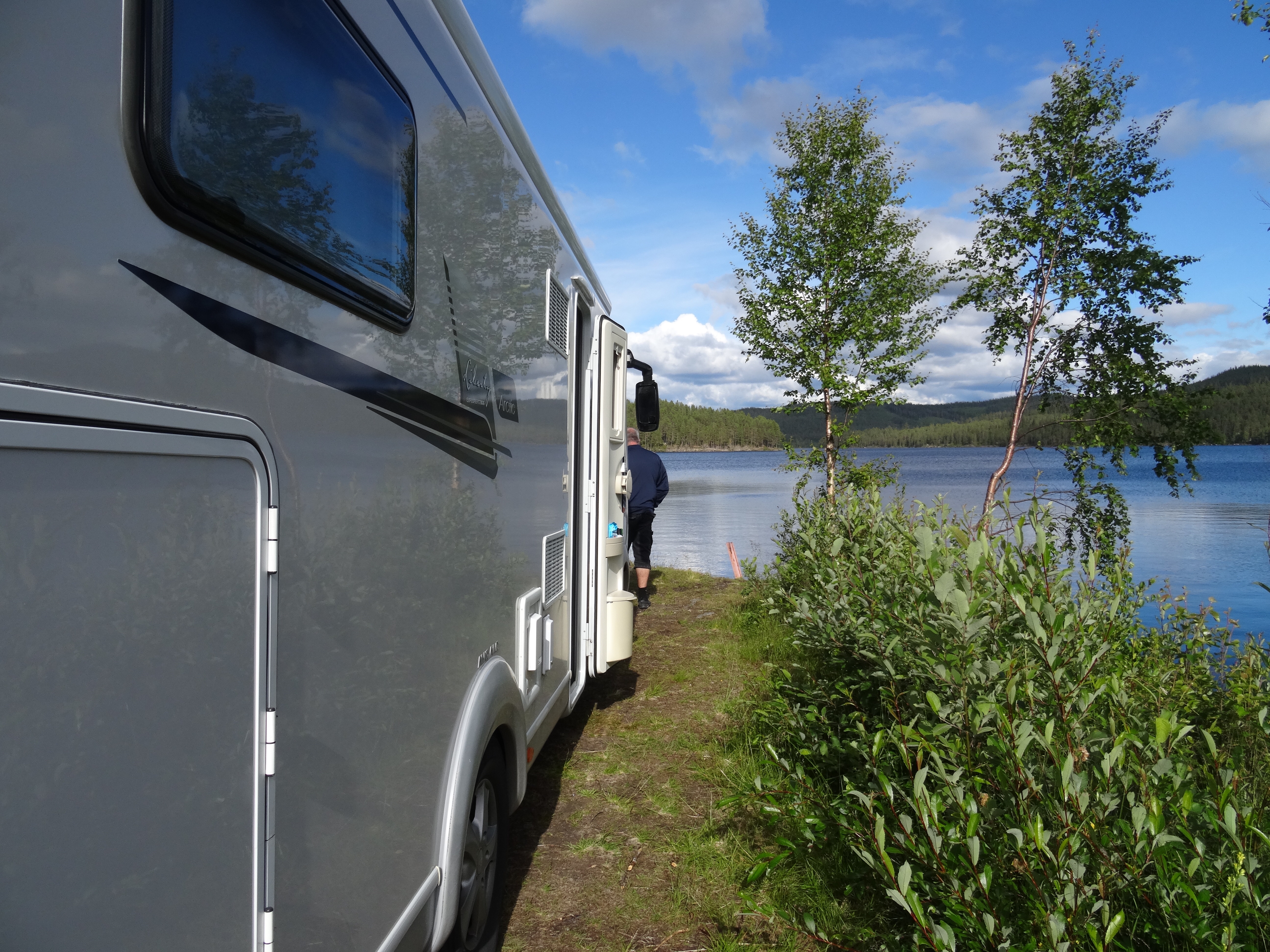 - Nu har vi parkerat på en sten,vid en sjö i en sjö…. Konstigt det där med att vi hamnar vid vatten:-)