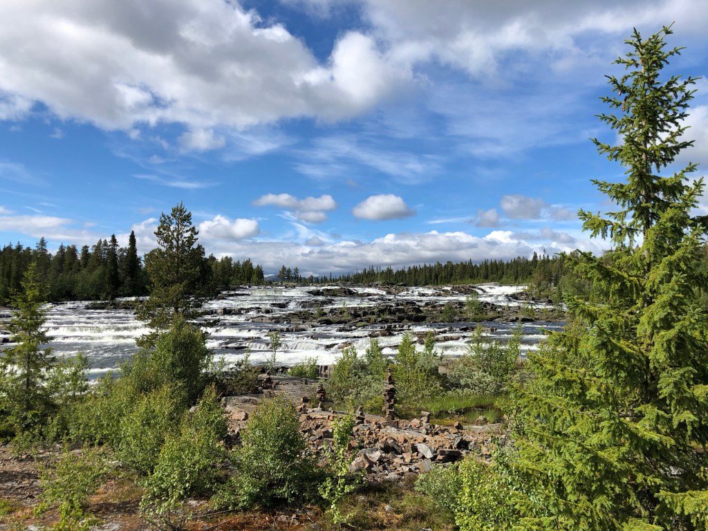 Medan vi fortsatte mot Vilhelmina såg vi plötsligt en fors vid sidan av vägen. Där stannade vi för ett glasstopp. Dock vände vi då det var MYCKET folk inne i kaféet.Trappforsen hette det visst.