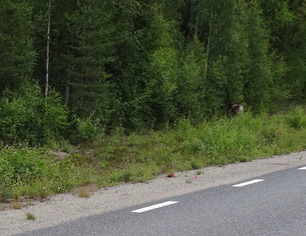 - och så idag äntligen en ren!!!! Fast om man ska vara riktigt ärlig såg vi mest en renrumpa, som faktiskt till och med fångades på bilden nedan.(fotograf Maken)