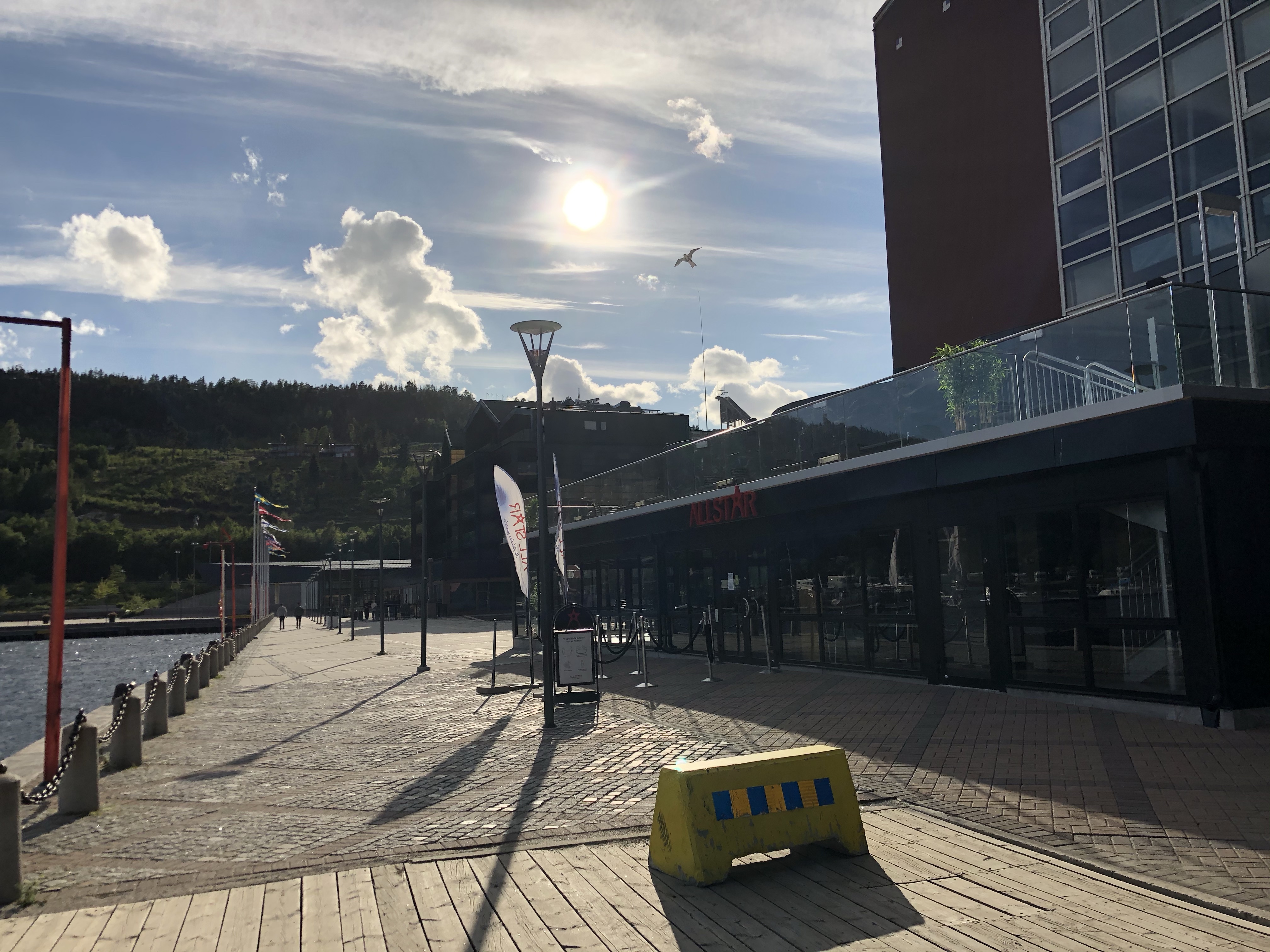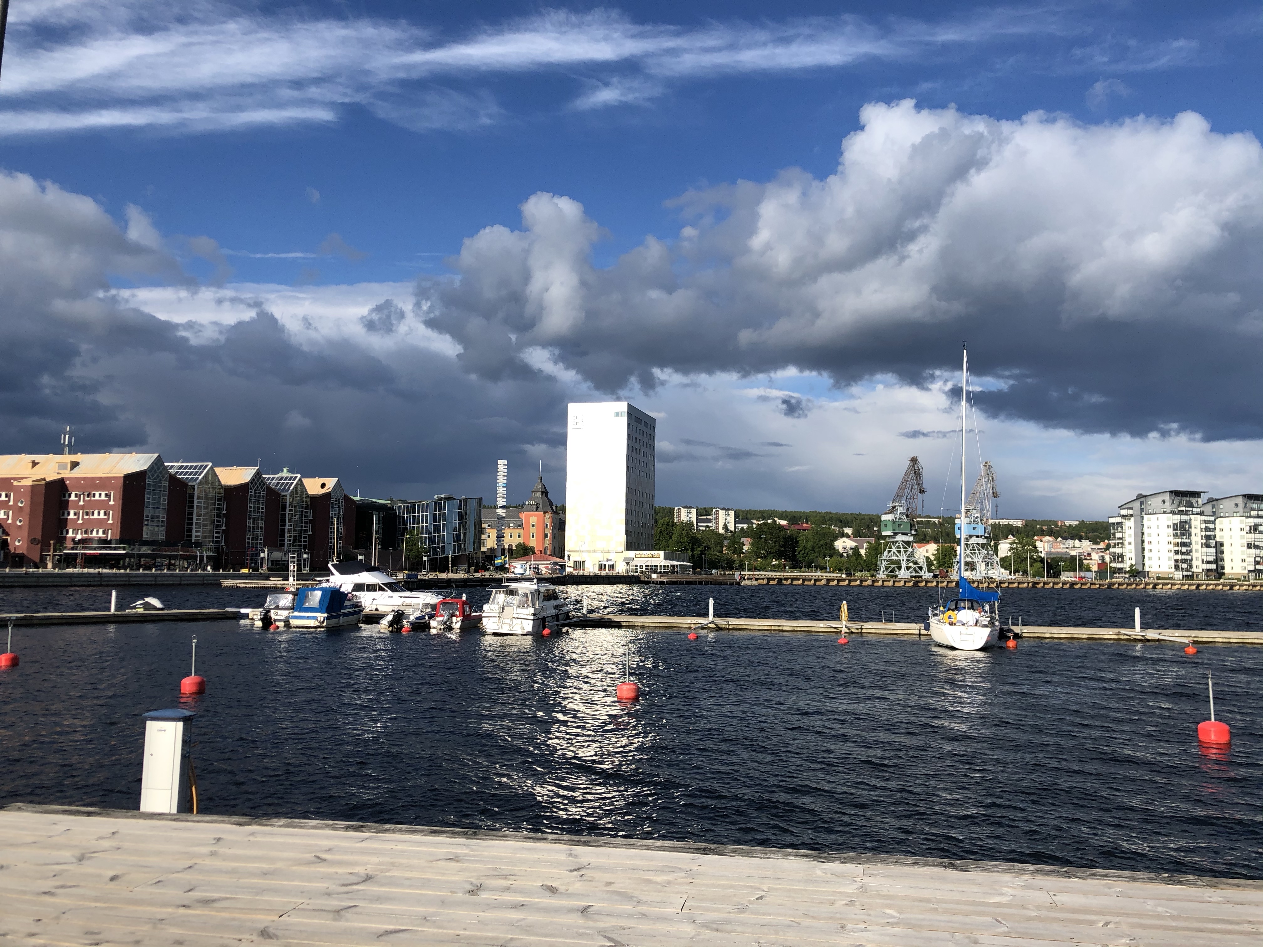 Nu har vi kommit till Örnsköldsvik och vi står i Gästhamnen där det ligger hela 2 båtar. Husbilar finns det desto fler av. Tyvärr är här helt dött. –Ingen av de fem krogarna hade öppet så det blir inget äta ute idag inte.