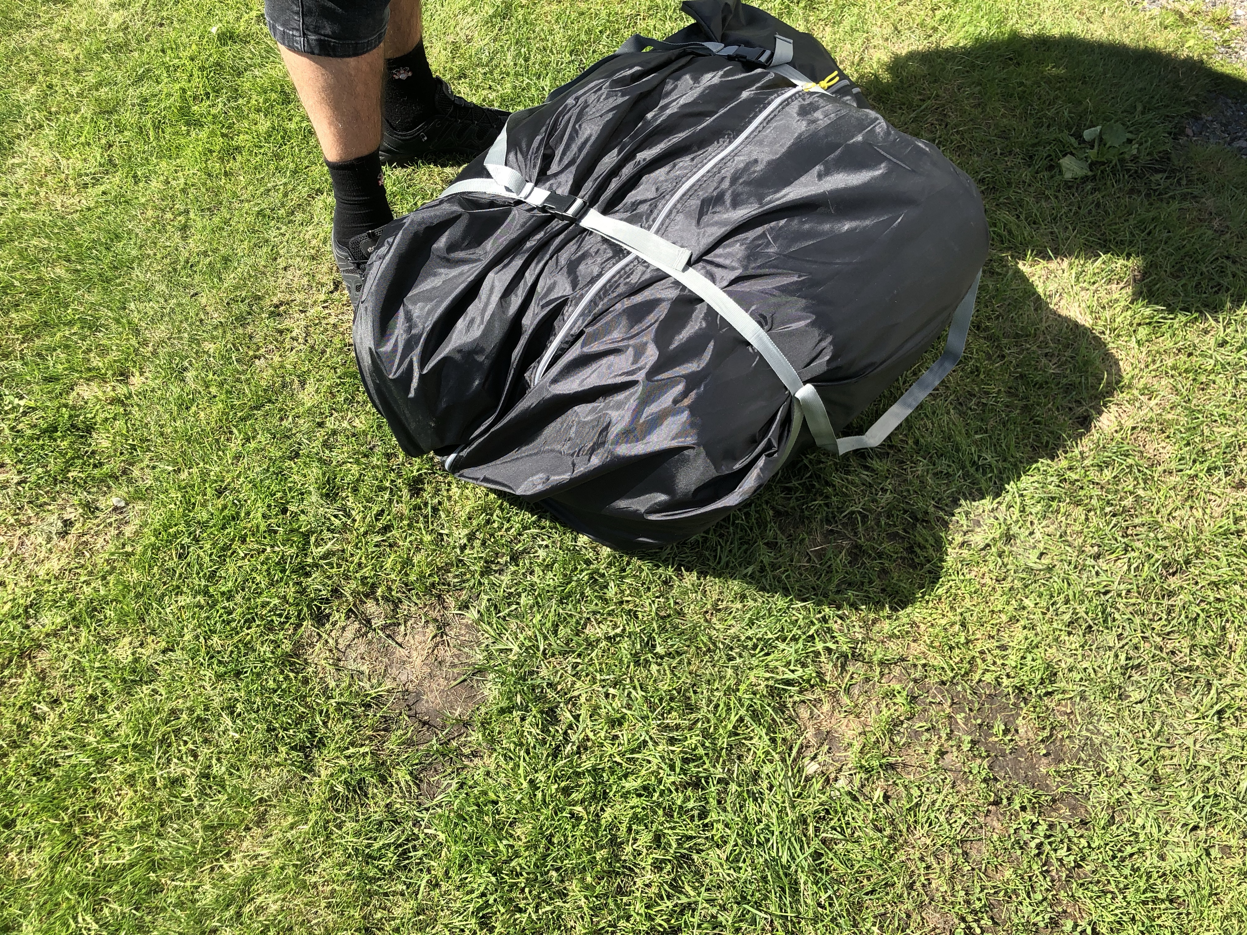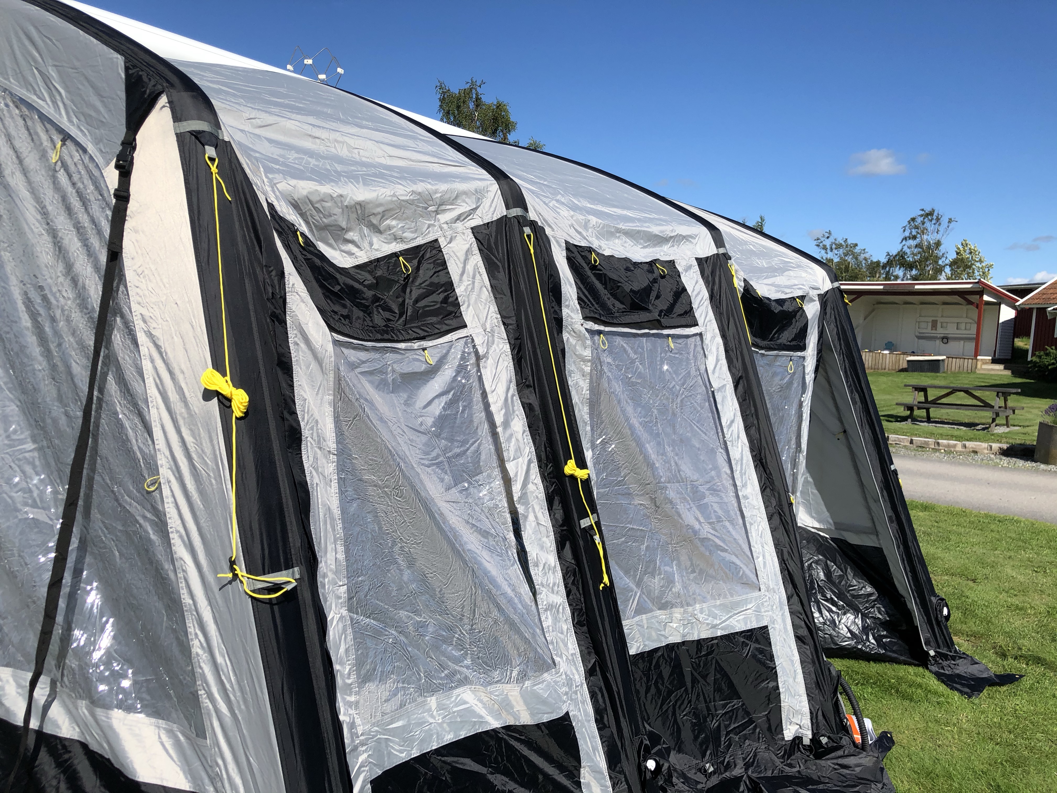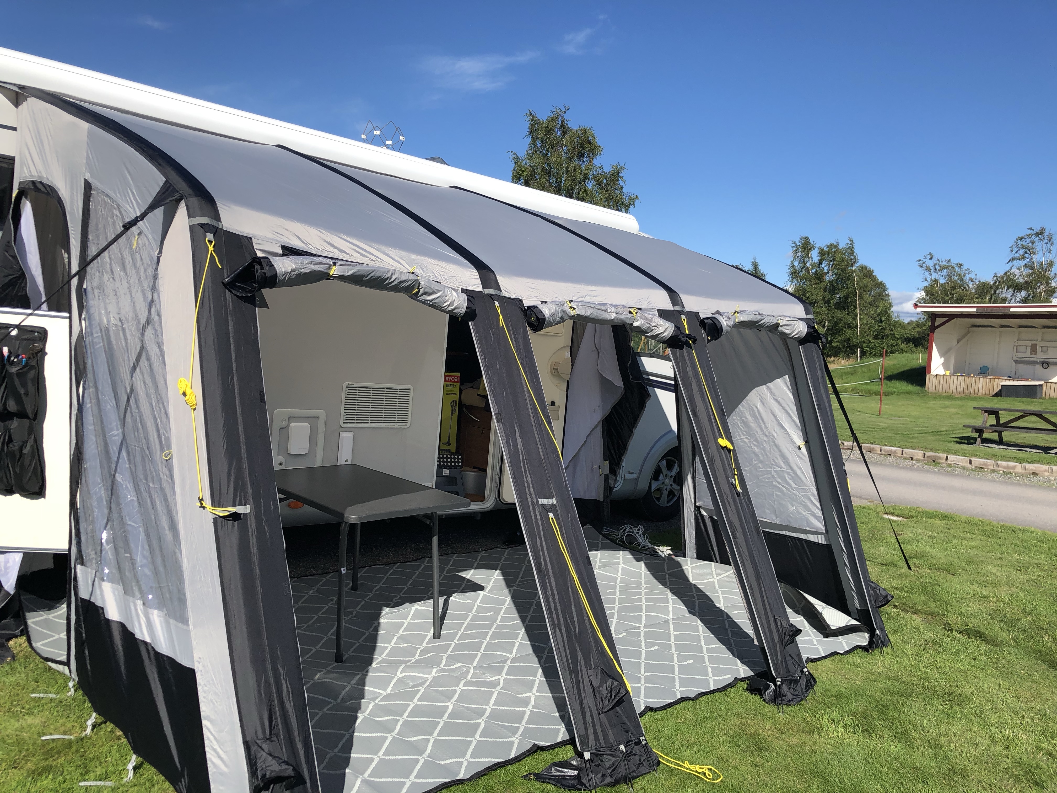 I ich med att husbilen ska stå stilla har maken monterat lufttältet. Det ger oss ett extra rum. Tyvärr kunde jag inte bidra med så mycket mer än glad tillrop och uppmuntran men mer behövdes inte och nu står det på plats.