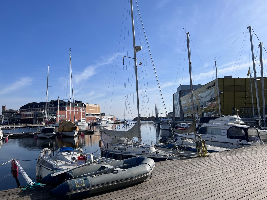 Kalmar är fint och det var vädret också. Alltså sportade jag shorts och linne på dagen. Tror nästan att våren är min favoritårstid. Vi tog en promenad ner till hamnen och satte oss i lä från den lite kyliga vinden. Maken ordnade kaffe från husbilen och färska , frasiga wienerbröd från affären. En väl spenderad timme helt klart