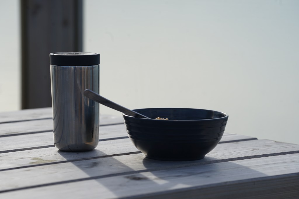 Maken väckte mig redan halv åtta och tyckte att även jag skulle gå upp och dricka kaffe med honom ute. Med tanke på att jag sett väderprognosen gick jag upp och belönades med en ljuvlig morgon. Typ en sådan vi brukade uppleva i båten liggande på svaj