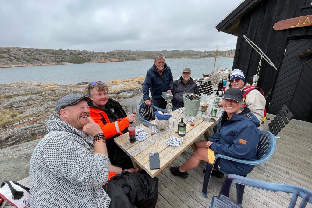 Vi lade till vid deras sjöbod där det tillagades musslor och vi fick smaka på både svenska och japanska ostron.