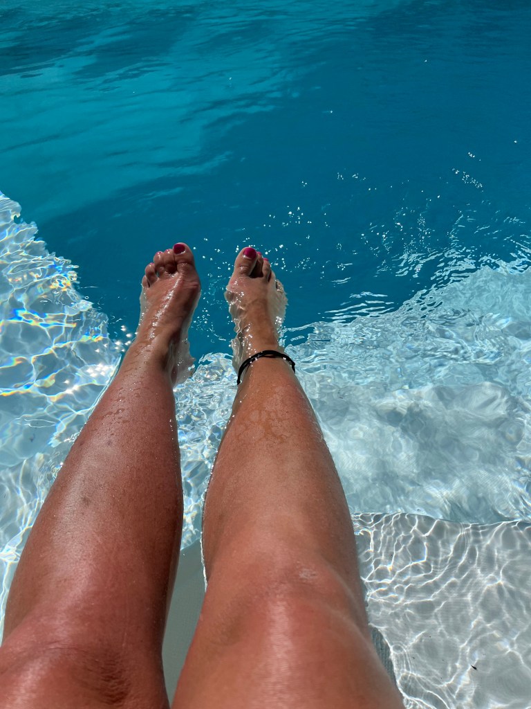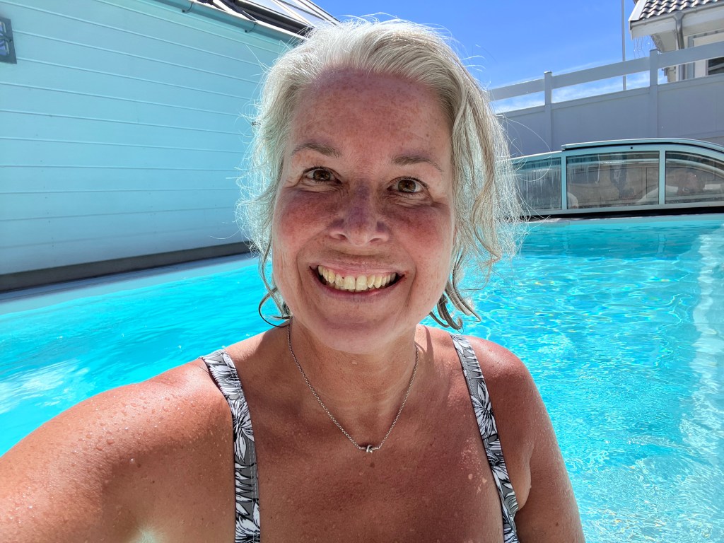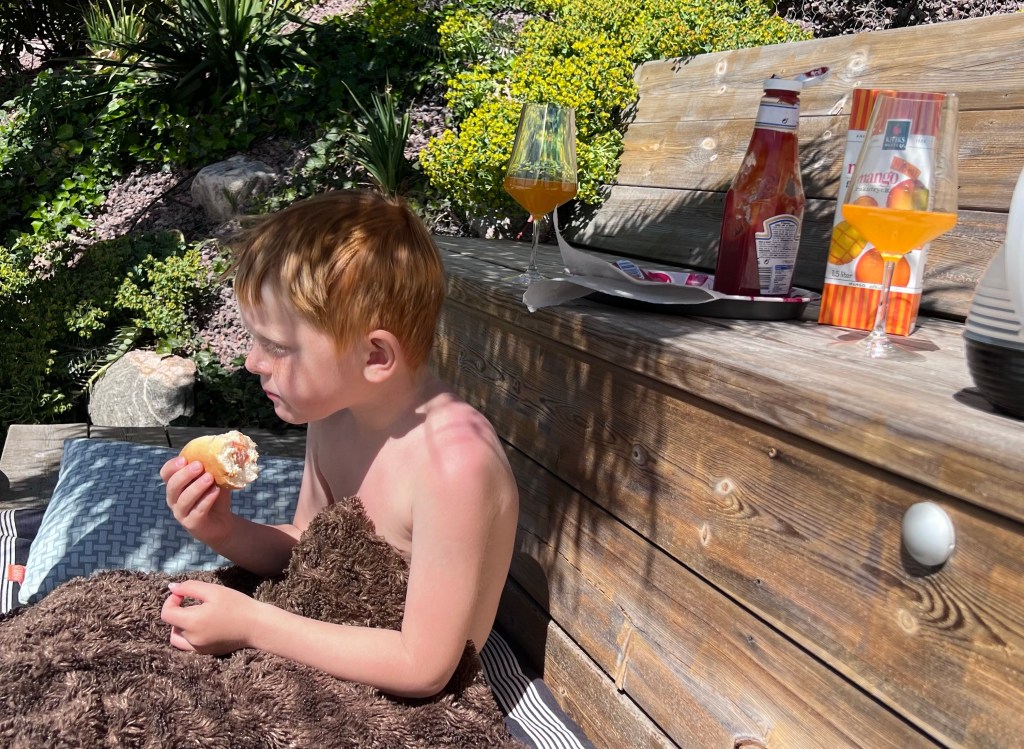 Hon hade dragit igång poolen för säsongen så vi badade rätt mycket och hade det väldigt skönt. Hon bjöd på lunch och jag fick hänga en stund även med gudsonen. Som han körde med oss. Vi skulle fånga bollar och annat han kastade i poolen men mös också i skuggan medan han pt sin lunch