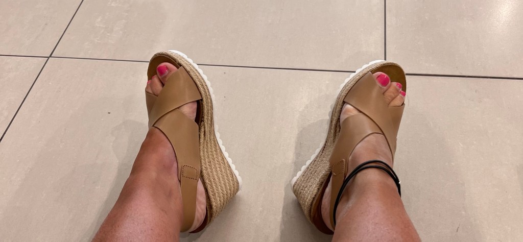 Avslutade dagen med att köpa ett par högklackade sandaler. De ger en extra svårighetsgrad när jag ska gå men skam den som ger sig