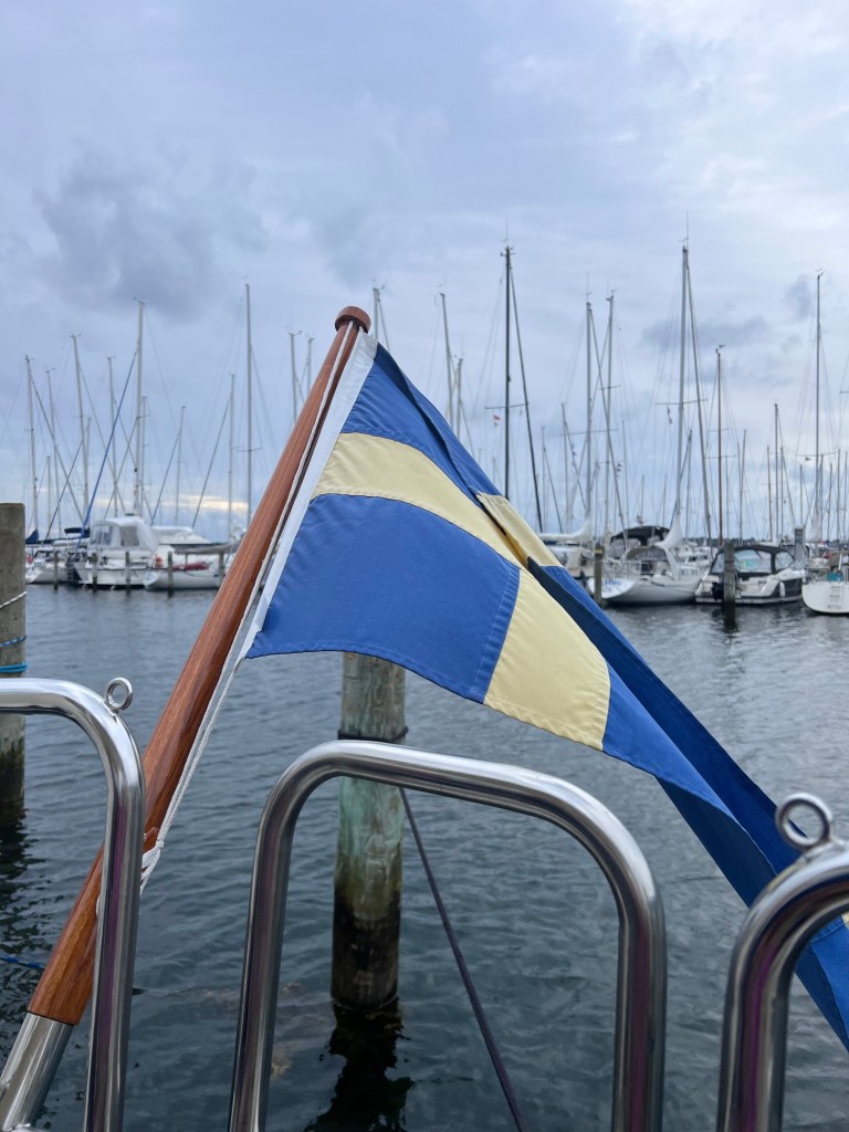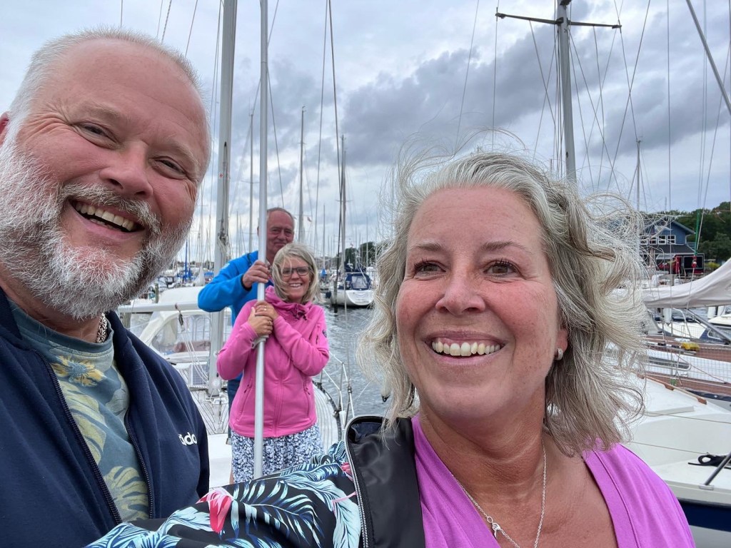 När vi sedan gick en sväng i hamnen sprang vi på bekanta hemifrån och blev medbjudna till deras båt. Vi fick en trevlig stund i deras sittbrunn.