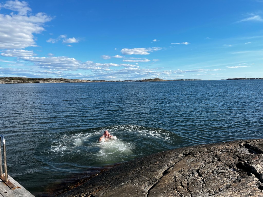 Vi ska vara iväg med husbilen en vecka och började med ett stopp på Hällsö. Inte bara ett stopp utan även ett dopp i havet.