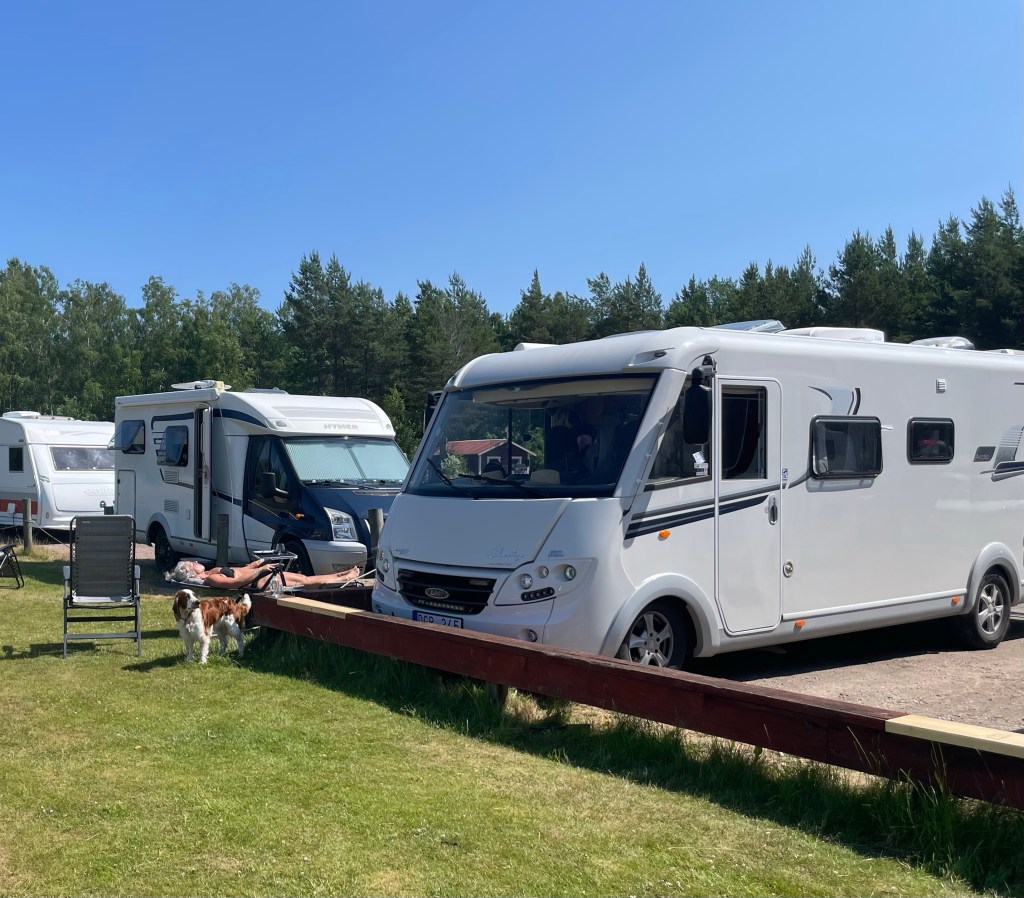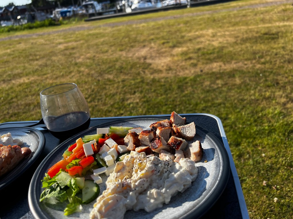 Efter en god grillad middag har vi gått in i husbilen och dragit för gardinerna. Det var väldigt skönt för ögonen.