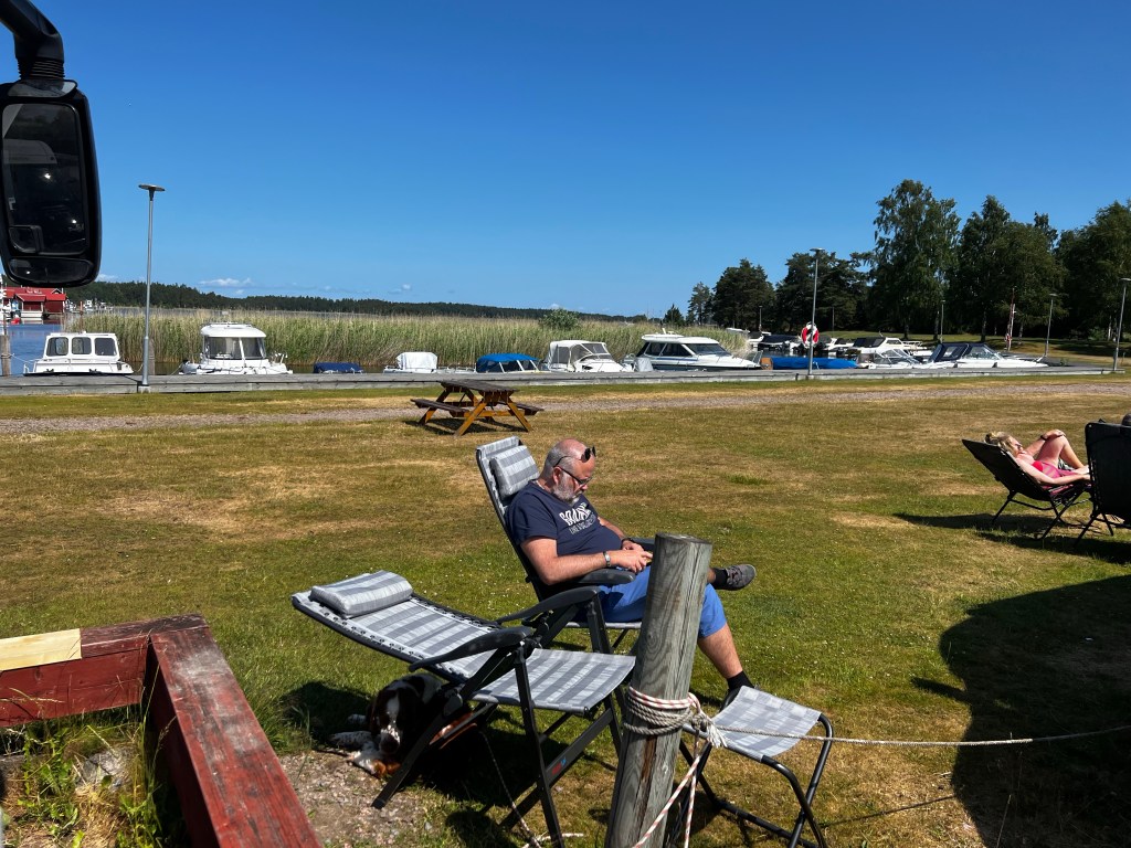 Trots gårdagens regn vaknade vi till klarblå himmel och strålande sol. vi har inte gjort mycket alls utan bara slappat och kommit ner i varv. Våren har varit rätt händelserik så vi behöver nog båda både lite lugn och ro men också miljöombyte. Att lyssna på ljudbok i varsin solstol kändes lagom ansträngande.
