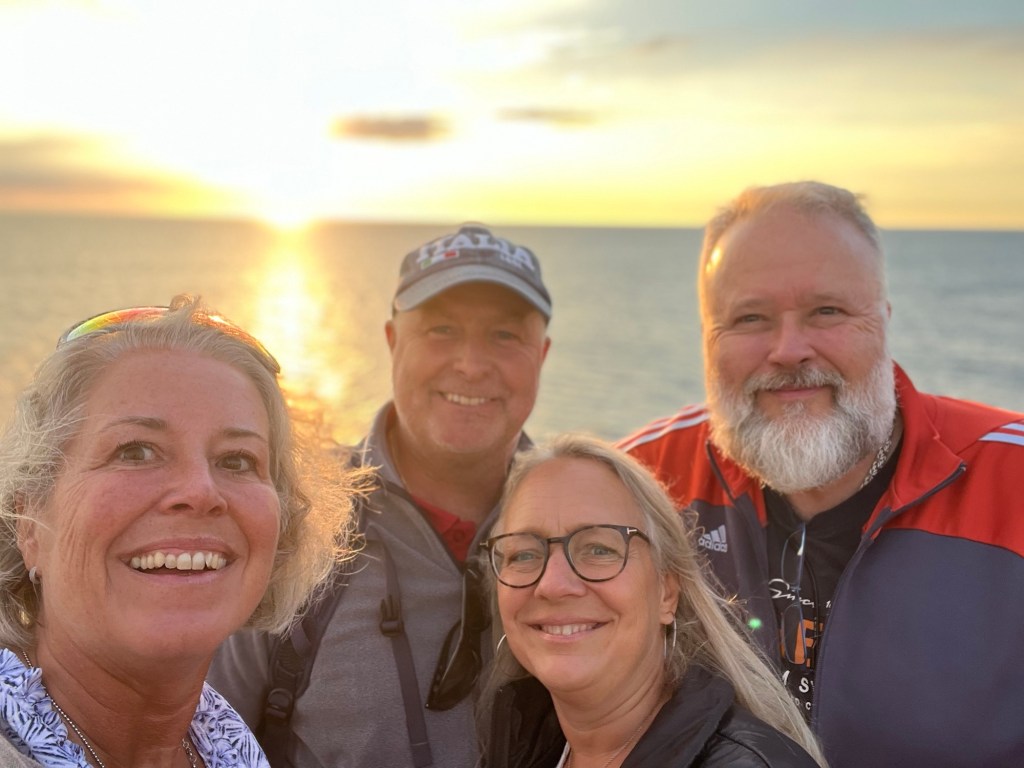 Efter en del packande och andra förberedelser rullade vi hemifrån igår. I Göteborg körde vi ombord på Kielfärjan för en natt på havet. Extra kul var att vänner anslöt och solen sken.