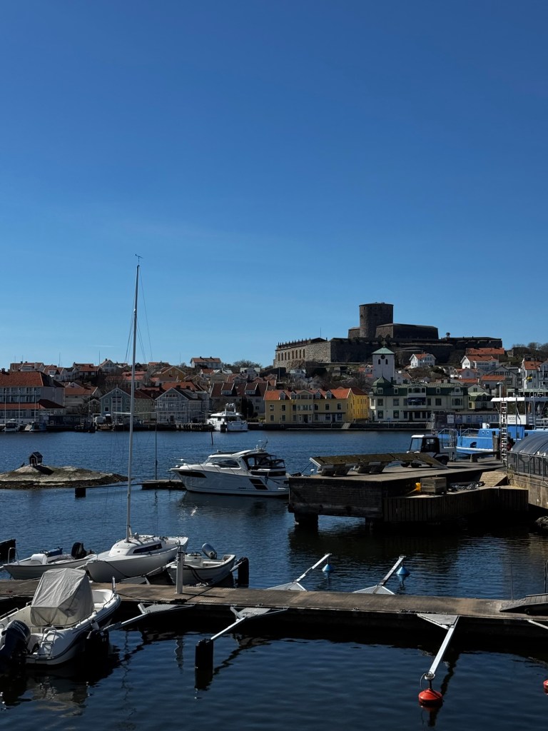Planen var att gå till Marstrand för lunch och sedan segla uppför Hakefjorden. Så blev det också och var gick för motor mot lunchen. I lä kunde vi låtsas att den lilla vind som var inte var kall.