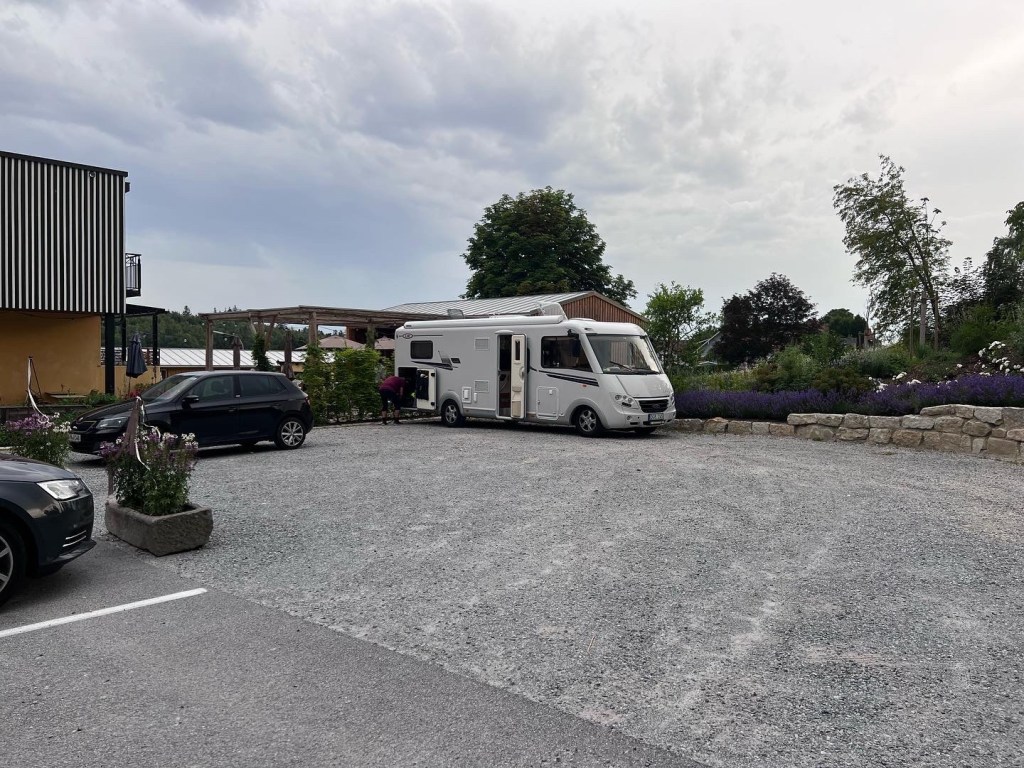 Vi blev välkomnade med stora famnen och vi fick stå på deras parkering( Ruderting har ingen ställplats) och tom koppla en sladd för ström så att vi kunde ha acn igång. Det var fortsatt medelhavsklimat så det var värt massor.