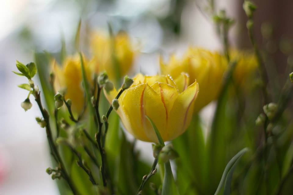 Ibland är det där med att köpa tulpaner lite av en chansning. Vissa slår liksom aldrig ut och torkar ihop så att de får slängas långt innan det borde vara dags. Den här fredagen köpte jag gula tulpaner. Vad jag inte såg var att det var lite lite rött i dem också och jag måste nog tycka att rött & gult är väldans snyggt ihop. Framförallt på tulpaner som fortfarande är krispiga och slår ut lite försiktigt i taget.