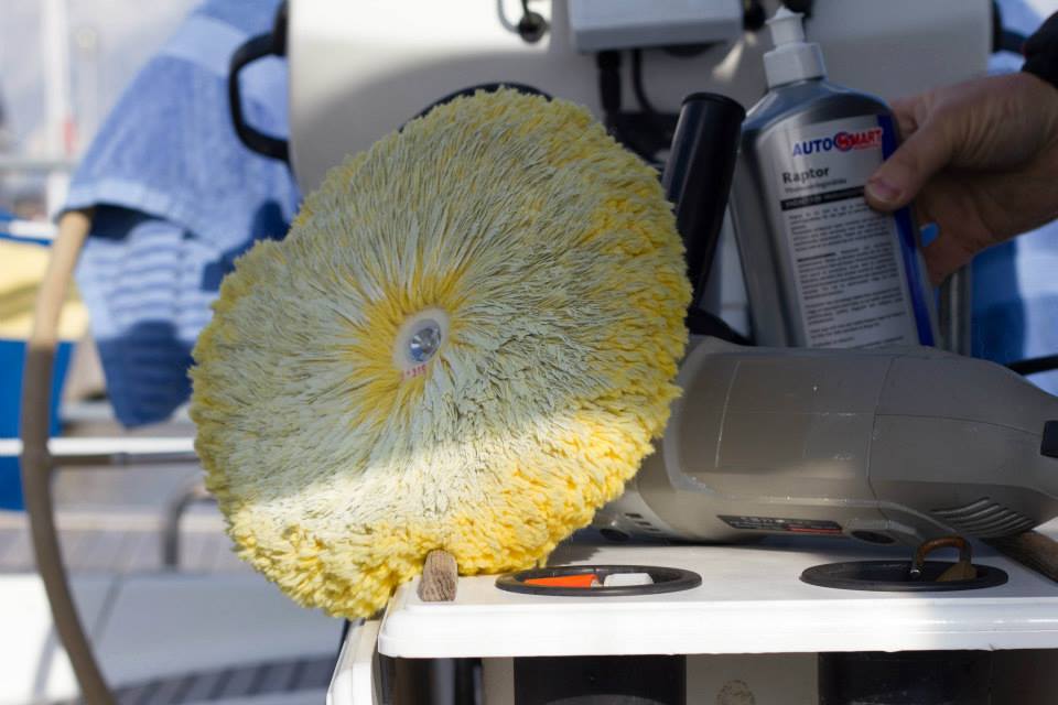 Helgens ”uppdrag” var att polera, vaxa och lackförsegla överbyggnaden och sittbrunnen på båten. Vädret var till stor hjälp även om det blåste rätt kallt. Kan säga att det känns i händerna. Största missödet var nog ändå när jag blev lite törstig och sträckte mig efter en flaska för att dricka, bara för att upptäcka att det var polish. Tur i oturen hann jag inte dricka men en del hamnade på läpparna. Oj vad jag spottade…