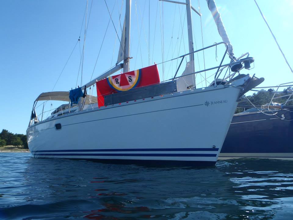 Under semestern är detta vårt ”hemma”. 36 fot lång, 3,73 m bred och med tre dubbelkabiner. Konstigt nog finns allt vi behöver ombord och jag förvånas alltid över att vi klarar oss utan allt det där andra som ”man behöver” Tex TV…