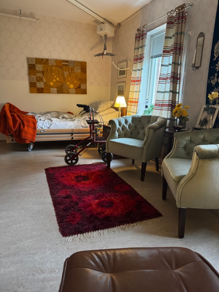 Det är nästan som att komma till huset de bodde i när man kommer till hans rum på boendet. Döttrarna lyckades väl med att fixa till det.