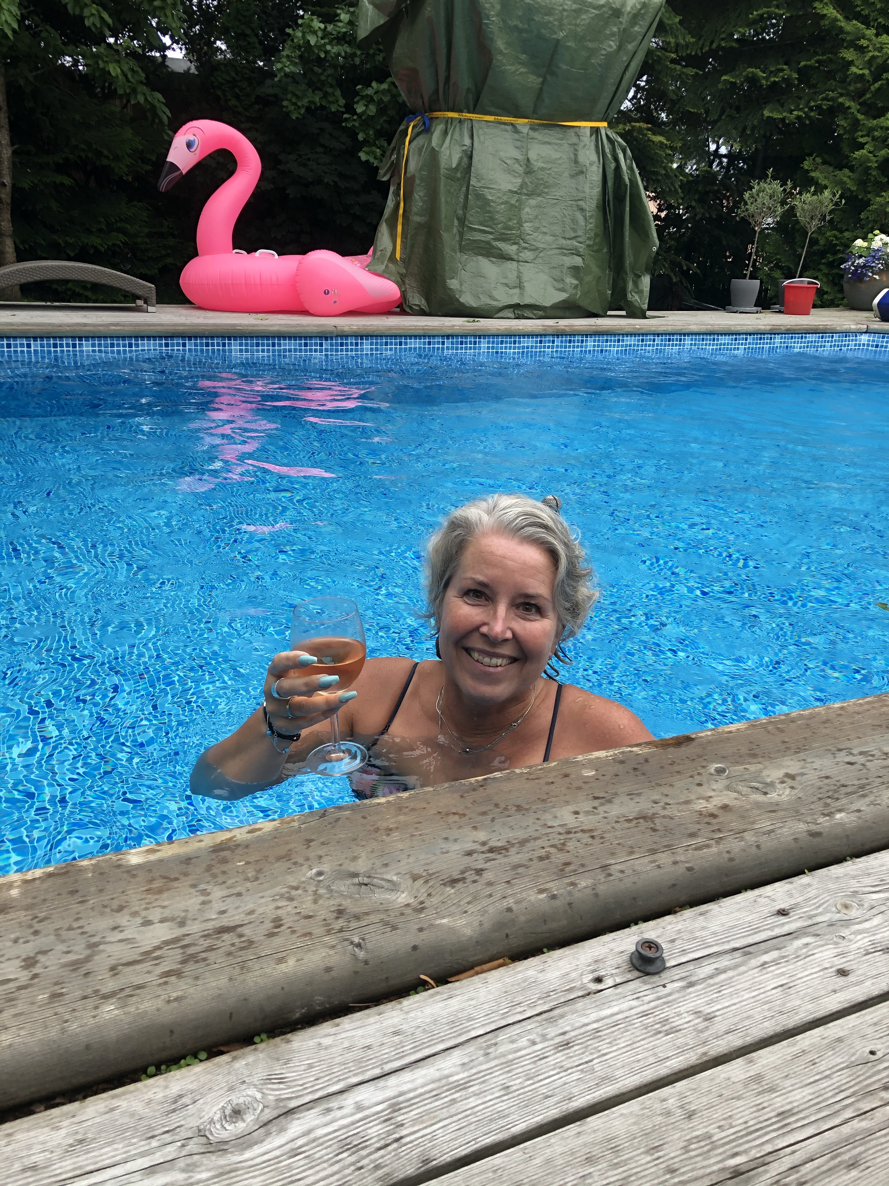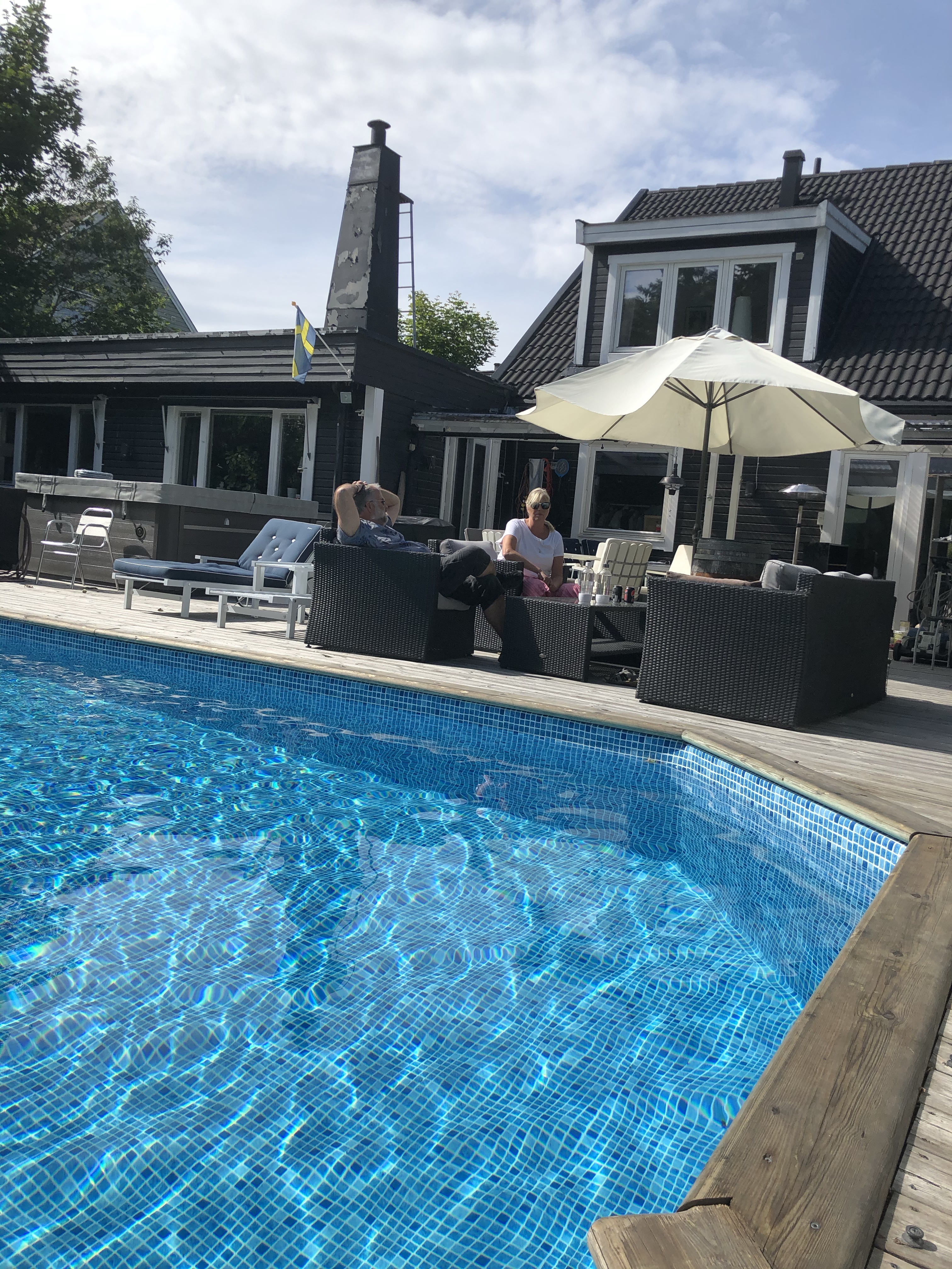 Inte blev det något långt bad inte men i kom jag och det via stegen. Maken hade gått i först och tog emot mig. Det var mitt första bad i havet sedan stroken. Sååå skönt!
