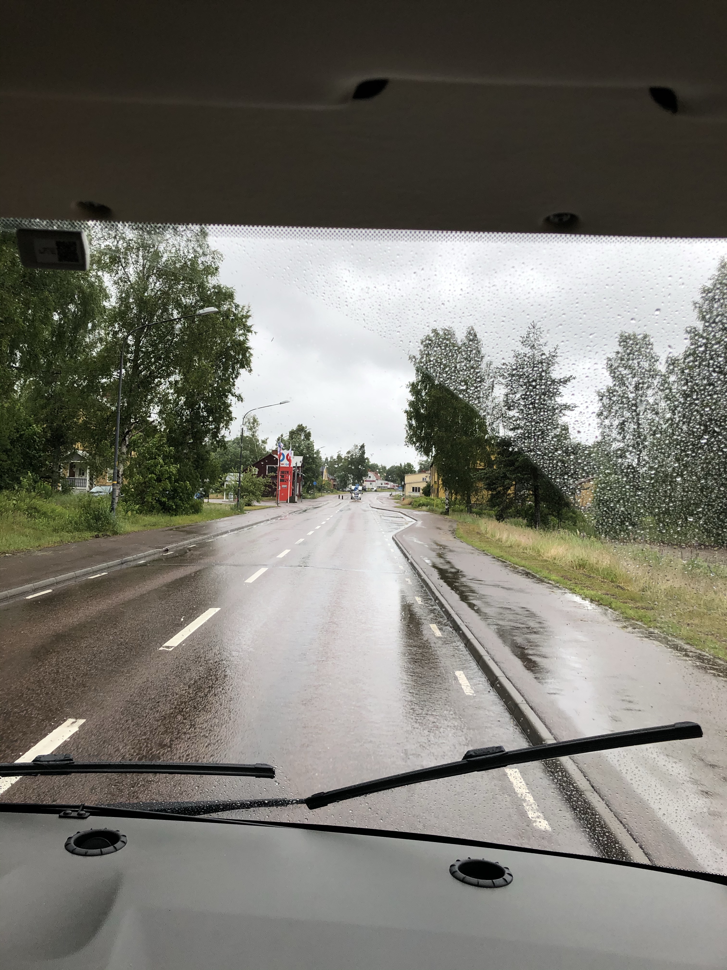 Förbi Mora, där vi stannade och åt och sedan till Älvdalen. Plötsligt såg maken en glänta en bit in från vägen. Där stannade vi och blir kvar över natten. detärju lite det som är finessen med husbil. Vi kan stanna när vi känner för de. Det regnar fortsatt så vi får mysa inne ikväll.