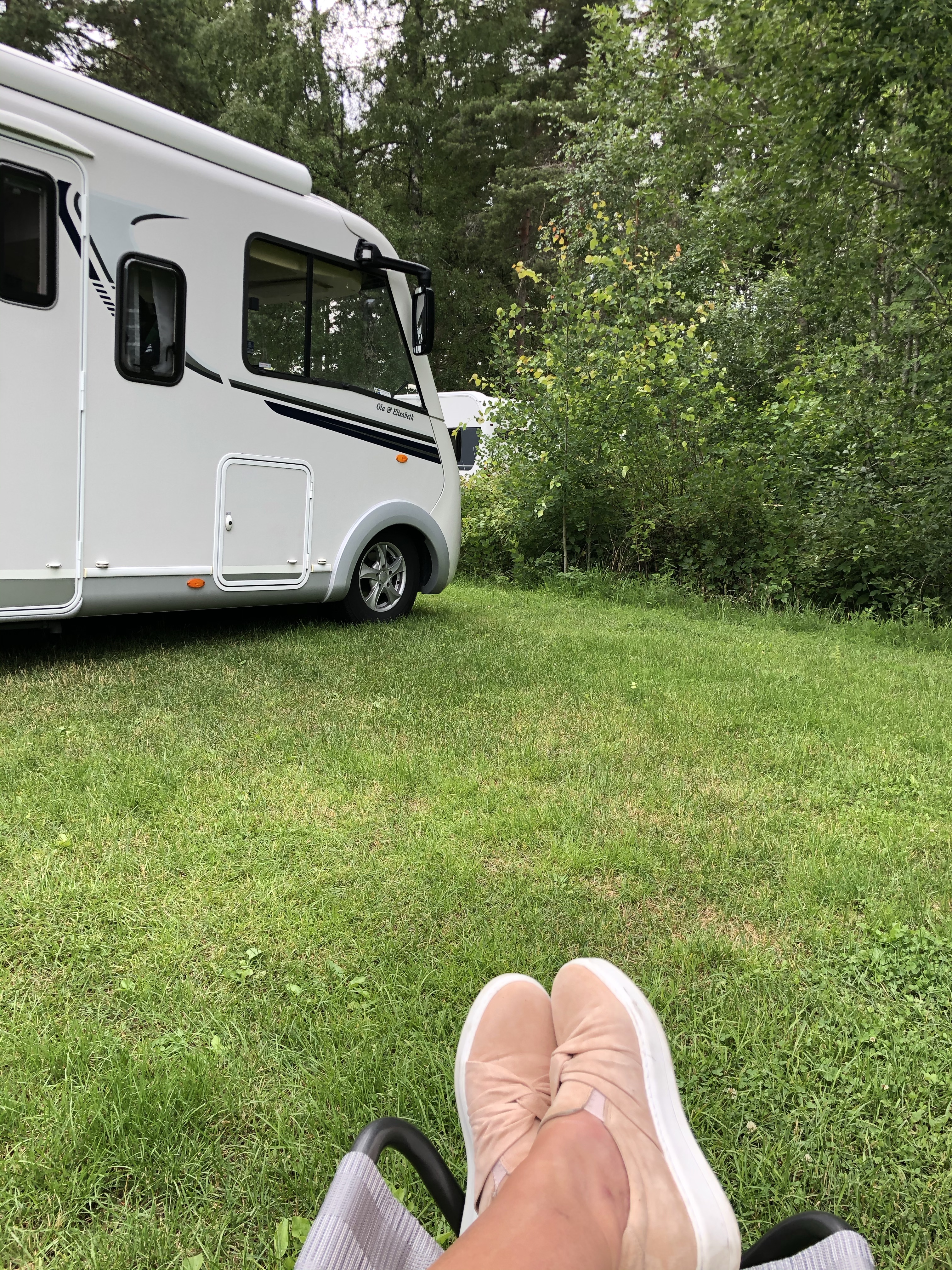 igår landade vi i Karlstad och min kusin och två av hennes döttrar dök upp med kladdkaka och tillbehör. Istället för att sitta i husbilen valde vi bord och bänkar vid servicehuset där vi kunde hålla avstånd. Det blev en trevlig stund.