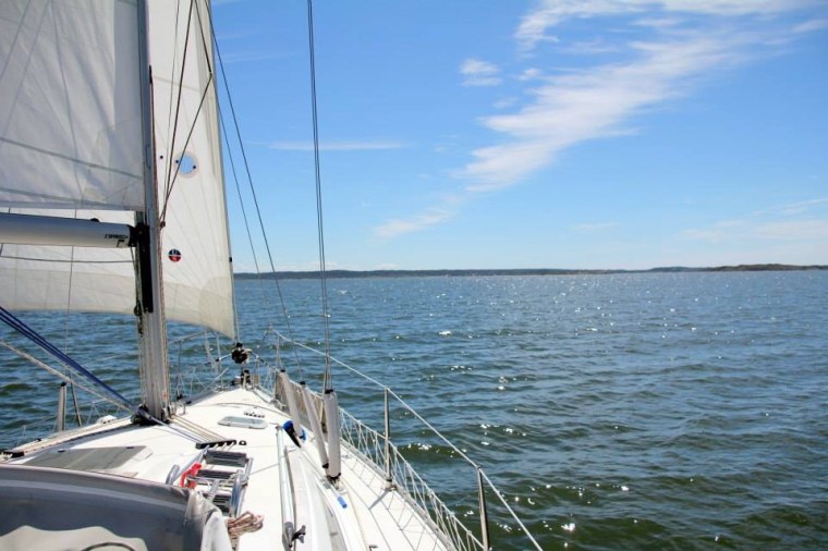 Först efter Marstrand och Albrektsunds kanal hade solen vandrat såpass mycket att vi både kunde segla och njuta av solen.