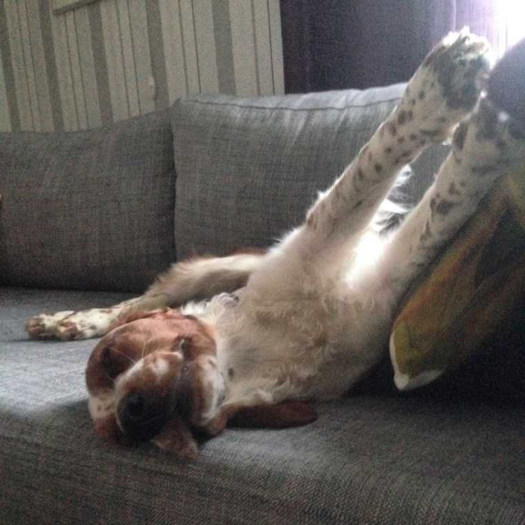 Ungefär samtidigt som hon bet till vred Philip på hela kroppen och sade ifrån ordentligt (på helt rätt sätt) och lagom ljudligt. Gnista visste inte hur snabbt hon skulle slänga sig ner på golvet med blottad strupe och ägnade sedan minst fem minuter åt att åla på golvet runt honom, fortfarande med blottad strupe, och försöka slicka honom i mungiporna. Vi snackar fjäsk på hög nivå.