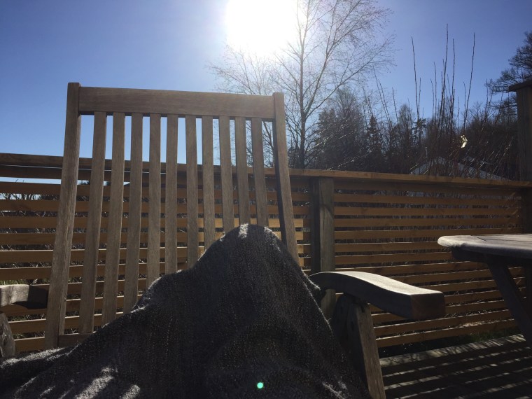Lite laddning fick jag ändå när jag kunde sitta ute en stund och njuta av solen. Dessutom kom vännerna/grannarna med hemgjord ärtsoppa och pannkakor till mig. Det blir perfekt till lunch imorgon.