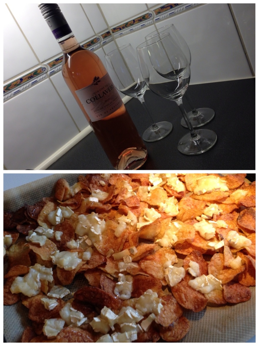 Fick ett tips av en av träningskompisarna. Tips till fredagsmyset. Bred ur chips på en plåt, smula getost över och skicka in i ugnen. Ringla lite honung över och gärna också granatäppelkärnor (de missade jag). Familjen var skeptisk men vågade smaka och gillade det. Medan snön singlade ner på utsidan låtsades vi att det var vår och öppnade en flaska rosé. Förra årets favorit som kommer att funka även i år. Collavery.