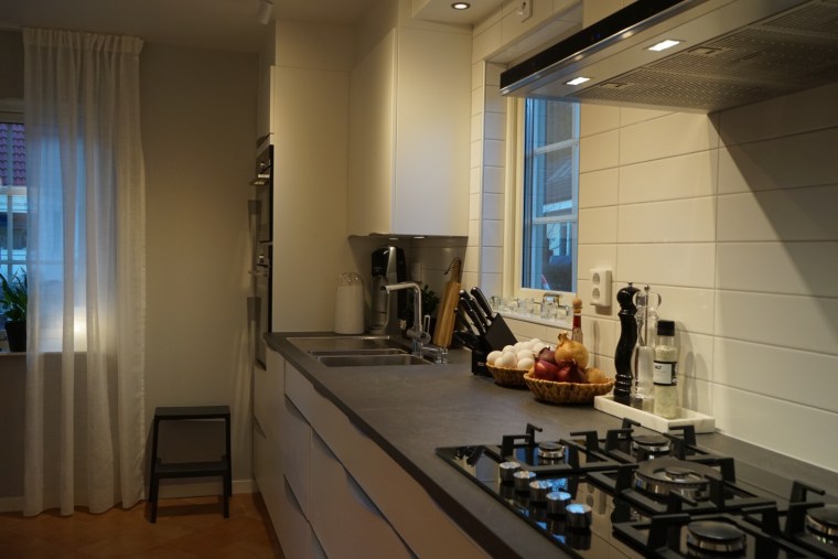 Del av köket där vi öppnade upp mot hall och vardagsrum: