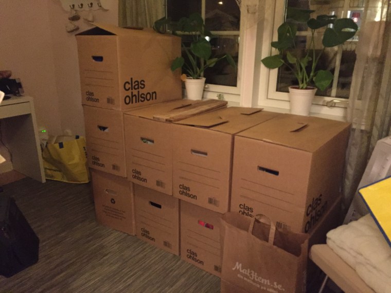 …och lyckades tratta ner det till tre möjliga val. En bekant hade precis målat om hemma och efter ett besök hos henne (hon hade valt samma tre gråa som jag velade mellan) åkte jag till färgaffären och köpte färgprover att provmåla med.