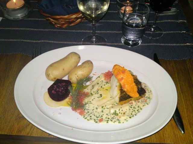 Snabbt tillbaka till båten för lite piffning innan vi gick tillbaka för att äta middag. Och vilken middag sen. Fem lisor av fem möjliga. Hummersoppa till förrätt och en torskrygg till huvudrätt. Helt fantastiskt gott. Restaurangen var fullsatt, miljön supermysig och stämningen på topp. Snacka om att konkurrens är bra. Petterssons krog är inte ensamma på ön…