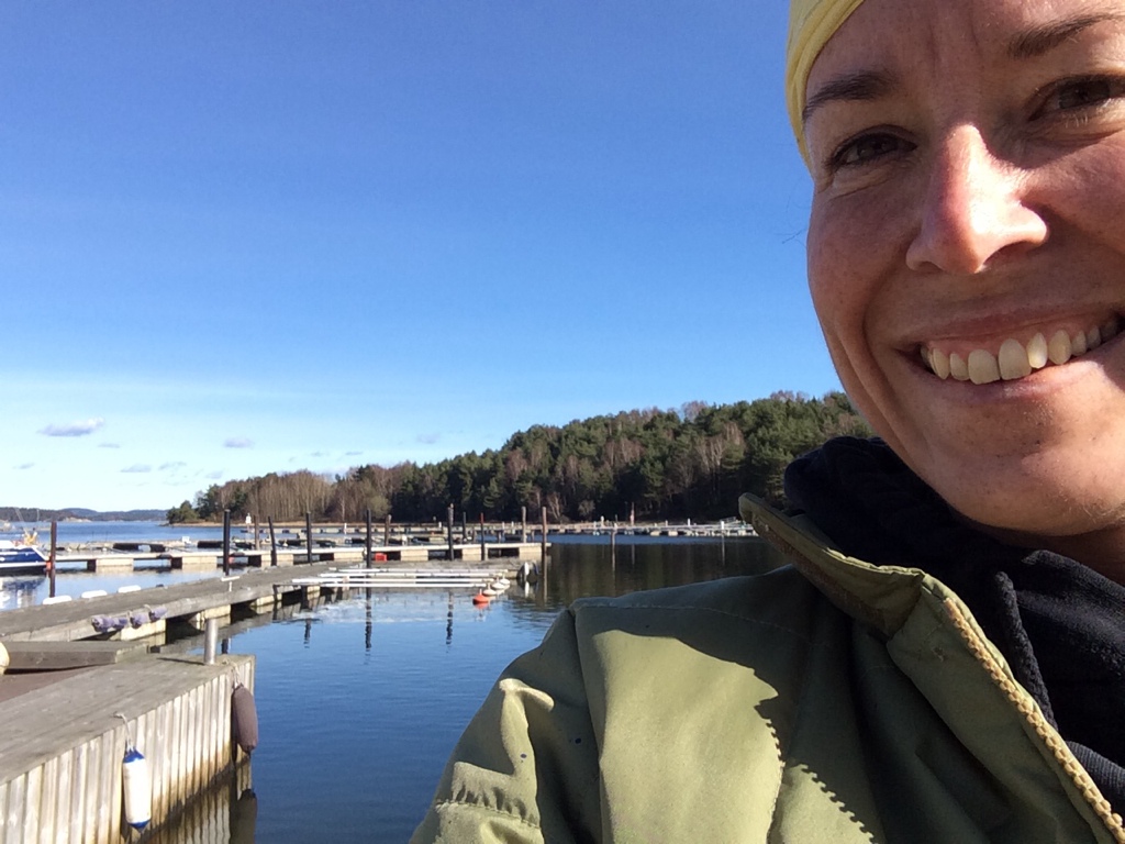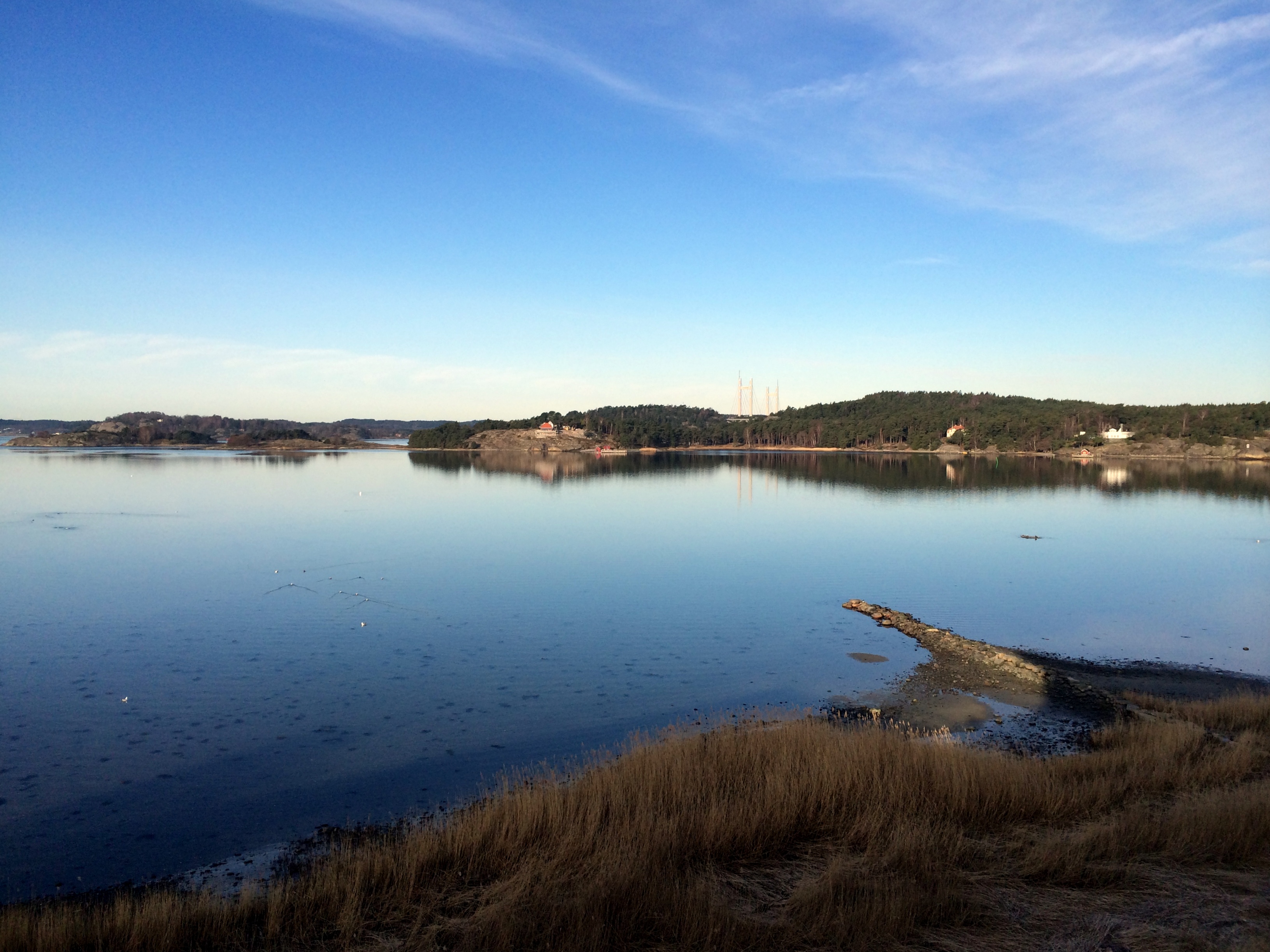 Det är något speciellt med färgen på himlen så här års. Vid vackert väder är den lite blåare än blå. Just det mötte med i morse när jag gick från parkeringen och som vanligt gjorde det mig glad. Glad inombords och så glad att det liksom spillde över lite till mungiporna också. Så mycket att jag nog faktiskt började nynna lite och direkt tog mig ut på balkongen för att föreviga det. Det blåa som speglas i vattnet och gör vattnet ännu blåare.