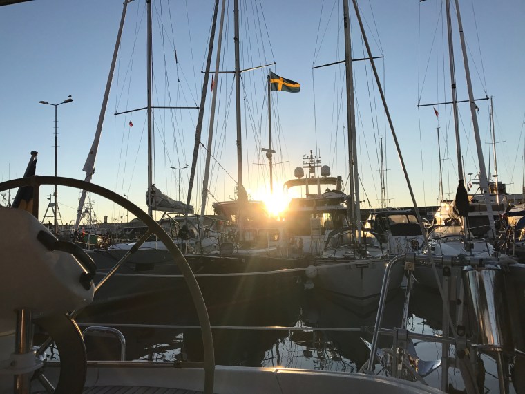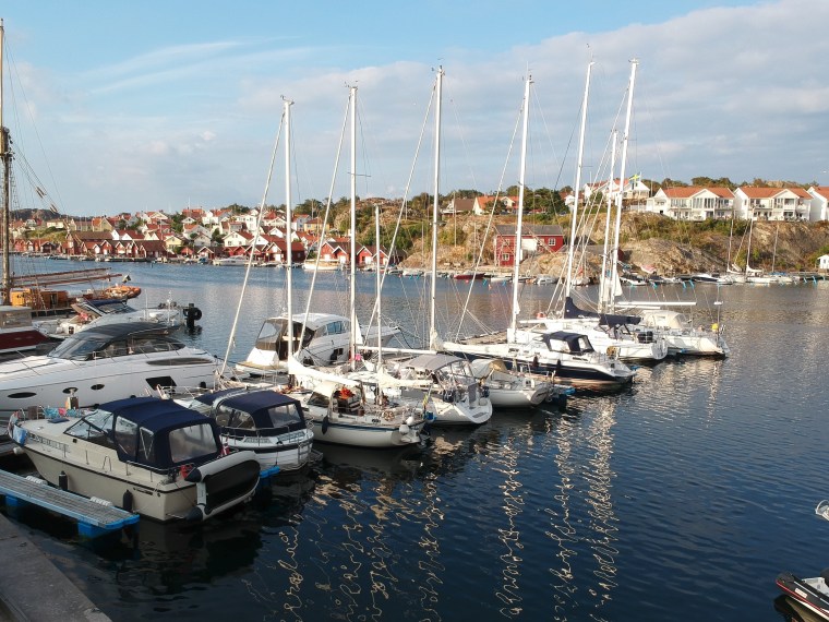 Vi fick en solig dag på havet och nästan 2 knops medström hela vägen till den svenska kusten så överfarten från kaj till kaj tog knappt sex timmar. På Islandsberg möttes vi av Kvartsita och vi gick sedan vidare till just Kvartsitas hemmahamn Fiskebäckskil.