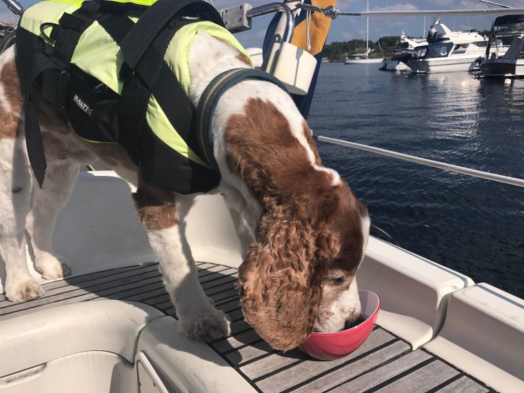 Efter en stund anslöt äldsta dottern med Philip och Nike och vi fick en trevlig stund med grill och chill. Även hundarna fick mat på båten 😃