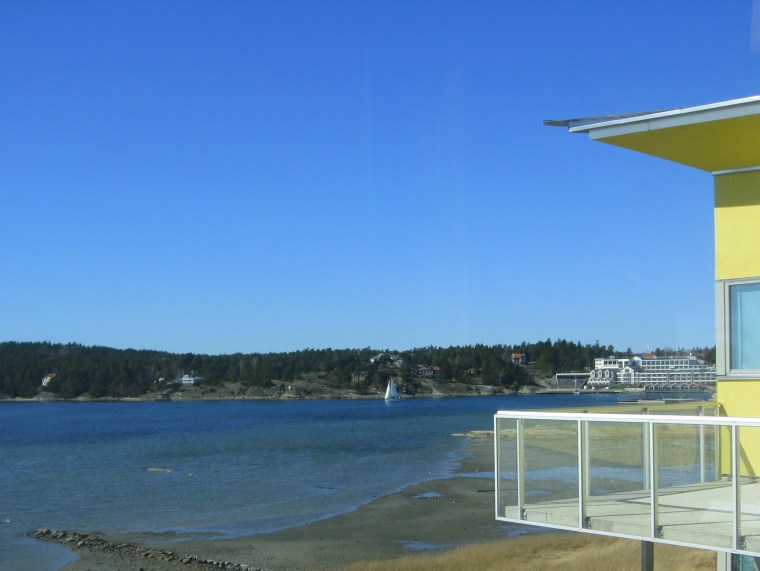 På Åstol är det vi och en motorbåt. Motorbåten ligger på andra sidan och vi ligger på bästa platsen, framför caféet. Både kvälls- och morgonsol. Hur bra som helst