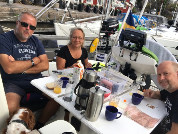Det blev en sista dag i båten i hemmahamnen. Medan Kompisbåten Alinde äntligen fick sin mast packade vi och förberedde för att åka hem. Och så väntade vi på kompisarna i Apex som hade siktet inställt på att ansluta till oss för en grillkväll tillsammans.