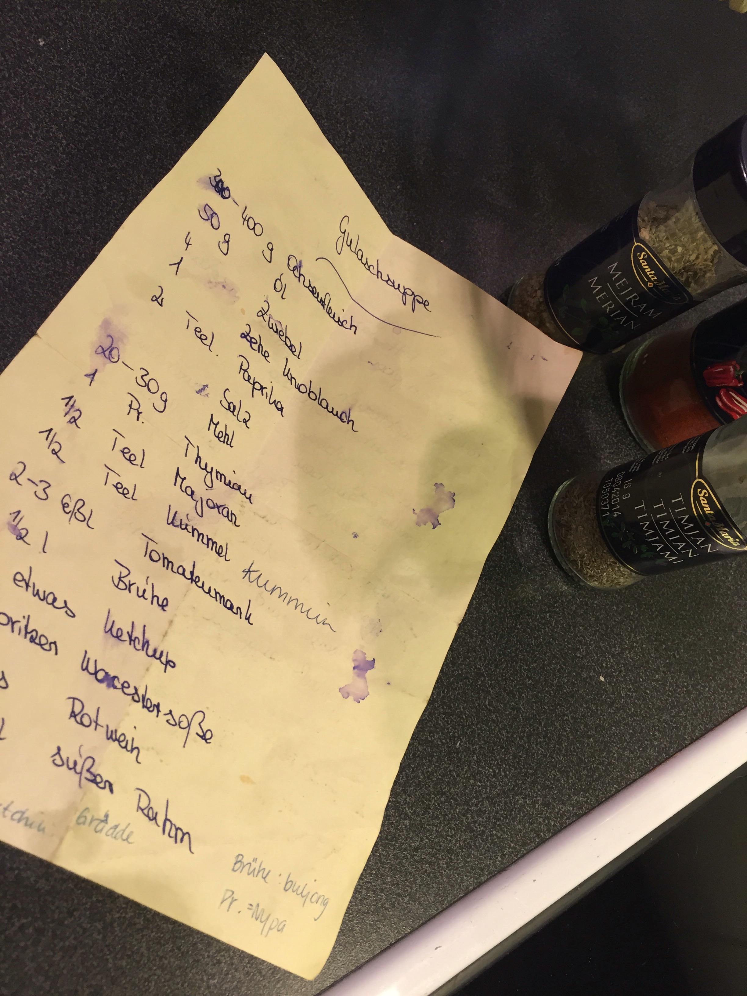 Till exempel måste man börja med gulaschsoppan redan efter frukosten så att den blir mustig och fin till middagen man spontant bjudit in sina vänner till. Den där gulaschsoppan som jag fick receptet till av Frau Maria i Tyska Ruderting.