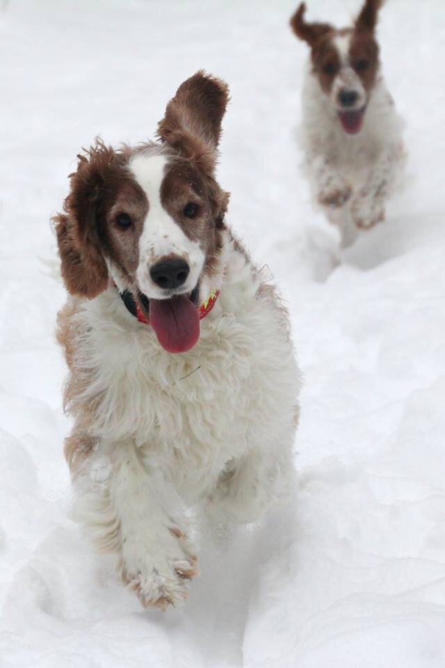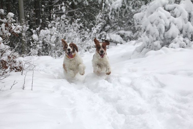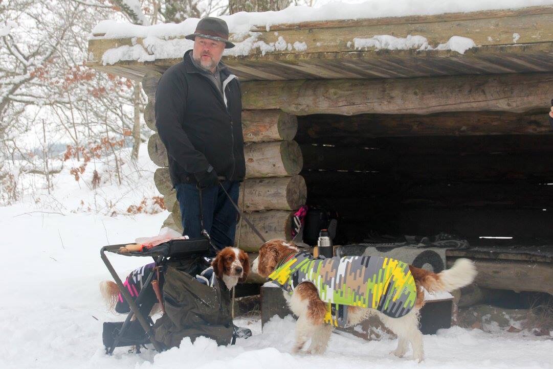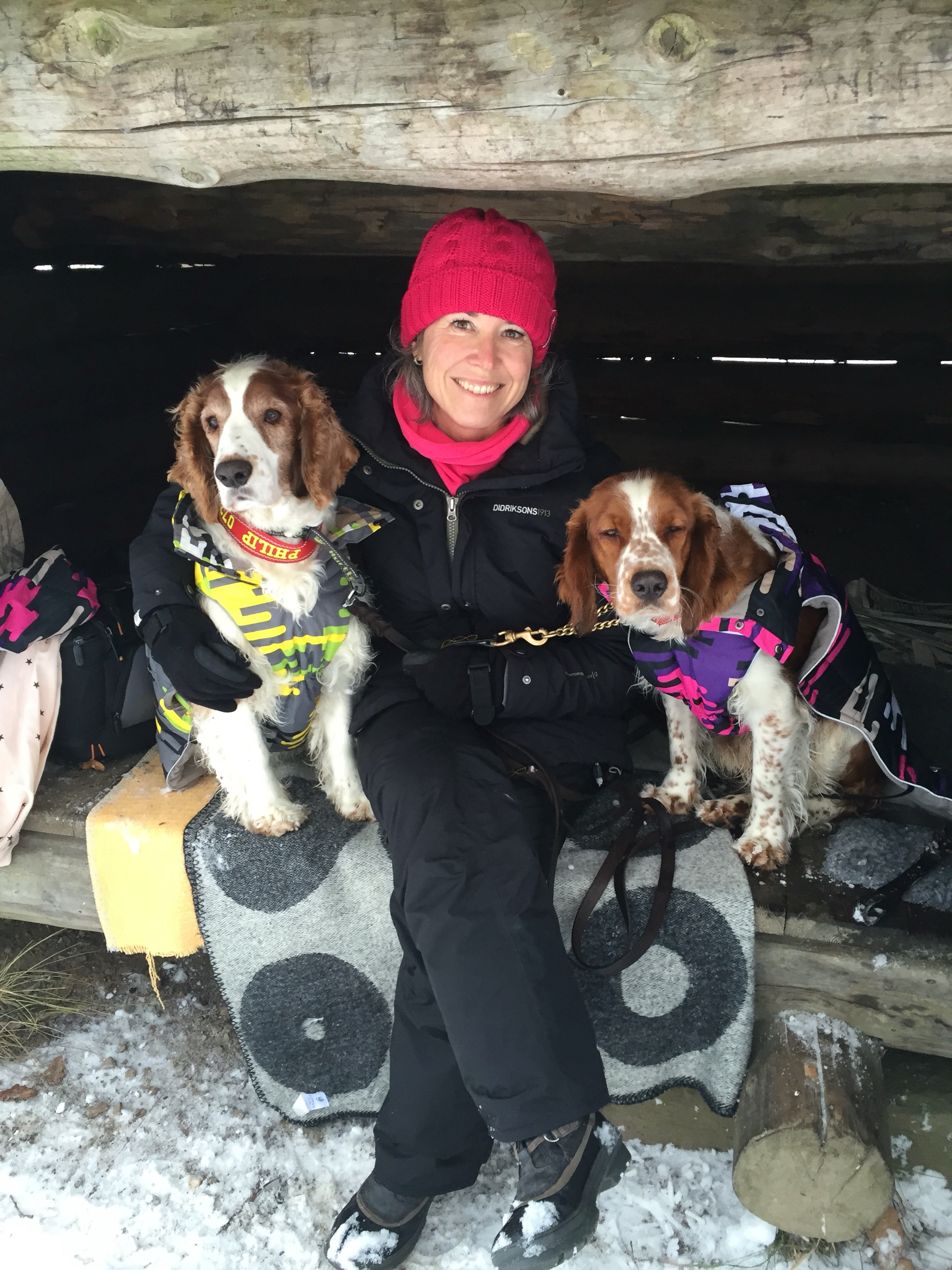Vi pulsade i decimeterdjup snö och valde det kortare spåret när snön började fastna i hundarnas päls och under tassarna. Men härligt var det och träningsvärk fick jag. Dessutom hade vi lånat med oss Gnista och fick mysa lite med henne också.