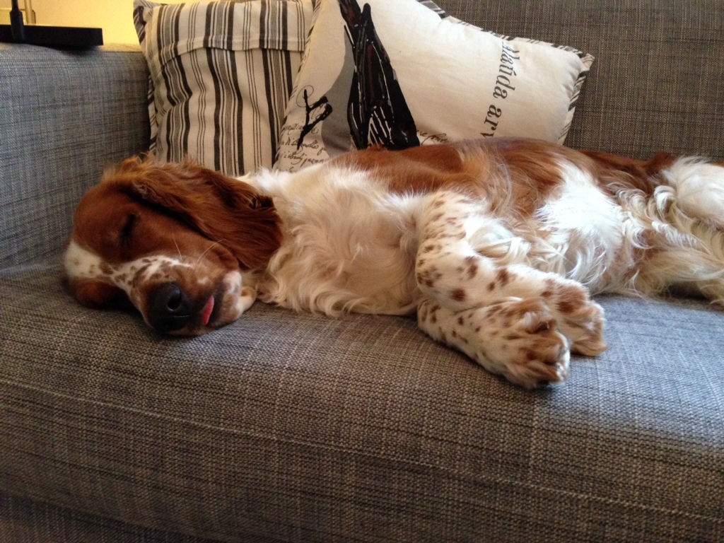 Det är klart att jag har funderat på vad Sintra gör på dagarna när hon är ensam. Efter att ha varit hemma sjuk i några dagar vet jag. Hon sover. Massor!
